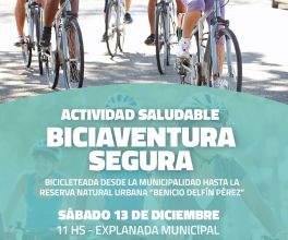 Miércoles 10 de Diciembre de 2025 - 08:17:45 En el marco del Plan Piquense de Seguridad Vial y de la Semana de la Conducción Responsable, la Municipalidad de General Pico llevará adelante este sábado 13, la iniciativa denominada “Biciaventura segura”. Mediante la misma, vecinos y vecinas podrán recorrer un tramo de la ciudad utilizando este medio de movilidad, hasta la Reserva Natural Urbana. El punto de encuentro será la Explanada municipal, a las 11 horas. Esto se da también en virtud del Día del Vecino y la Vecina Participativa de General Pico, que se conmemora cada 15 de diciembre y está dirigido a personas a partir de los diez años, quienes deberán concurrir con bicicleta. Será una jornada destinada a impulsar el deporte seguro, saludable y promocionar el cuidado del medio ambiente. Para ser parte, las y los interesados deberán inscribirse en el siguiente link https://forms.gle/pH2UbTg1qGVsWGAaA