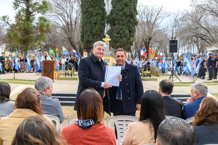 Martes 12 de Agosto de 2025 - 19:04:44 Con un fuerte mensaje en defensa de la presencia del Estado, el gobernador Sergio Ziliotto participó del acto aniversario de la ciudad, donde anticipó una inversión habitacional y ratificó que “no vamos a ceder ningún derecho de los pampeanos” .